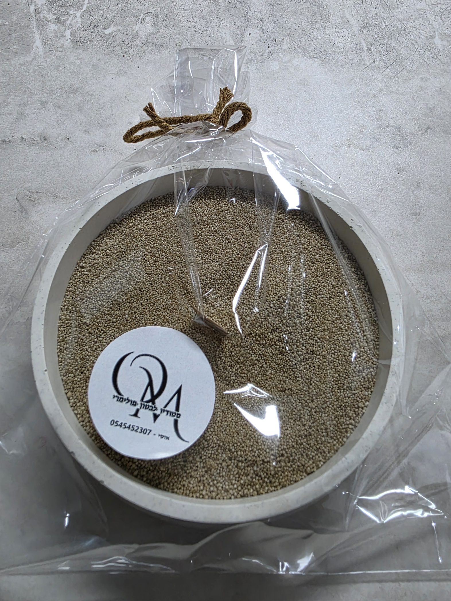 קערה מבטון פולימרי עם פתיתי שעווה ריחניים, בעיצוב מודרני ואלגנטי שמוסיף לבית גם יופי וגם אווירה. פריט דקורטיבי יוקרתי שמפיץ ניחוח נעים ומשדרג כל חלל.